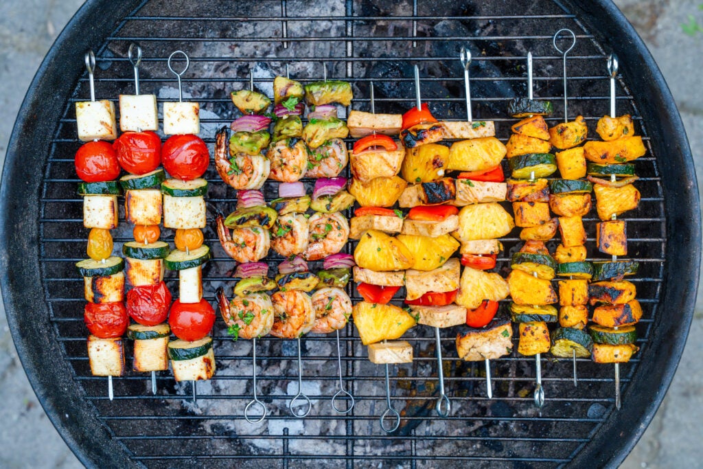 To assist unfold your protein consumption all through the day, nutritionists sometimes suggest aiming for 20 to 30 grams per meal, says Lane. On common, when you’re including a minimum of two ounces of meat or seafood per skewer, two skewers will get you into that vary. He says you’ll normally want about three skewers per serving to hit that focus on for plant-based protein sources like tofu.