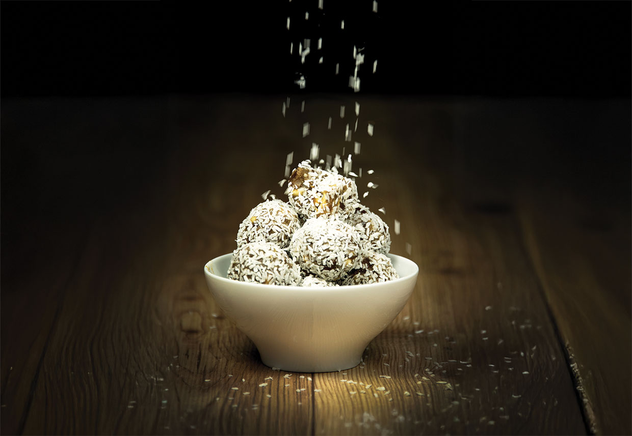 Desiccated coconut: Provides texture and a touch of tropical flavour; used for coating reasonably than mixing into the combination